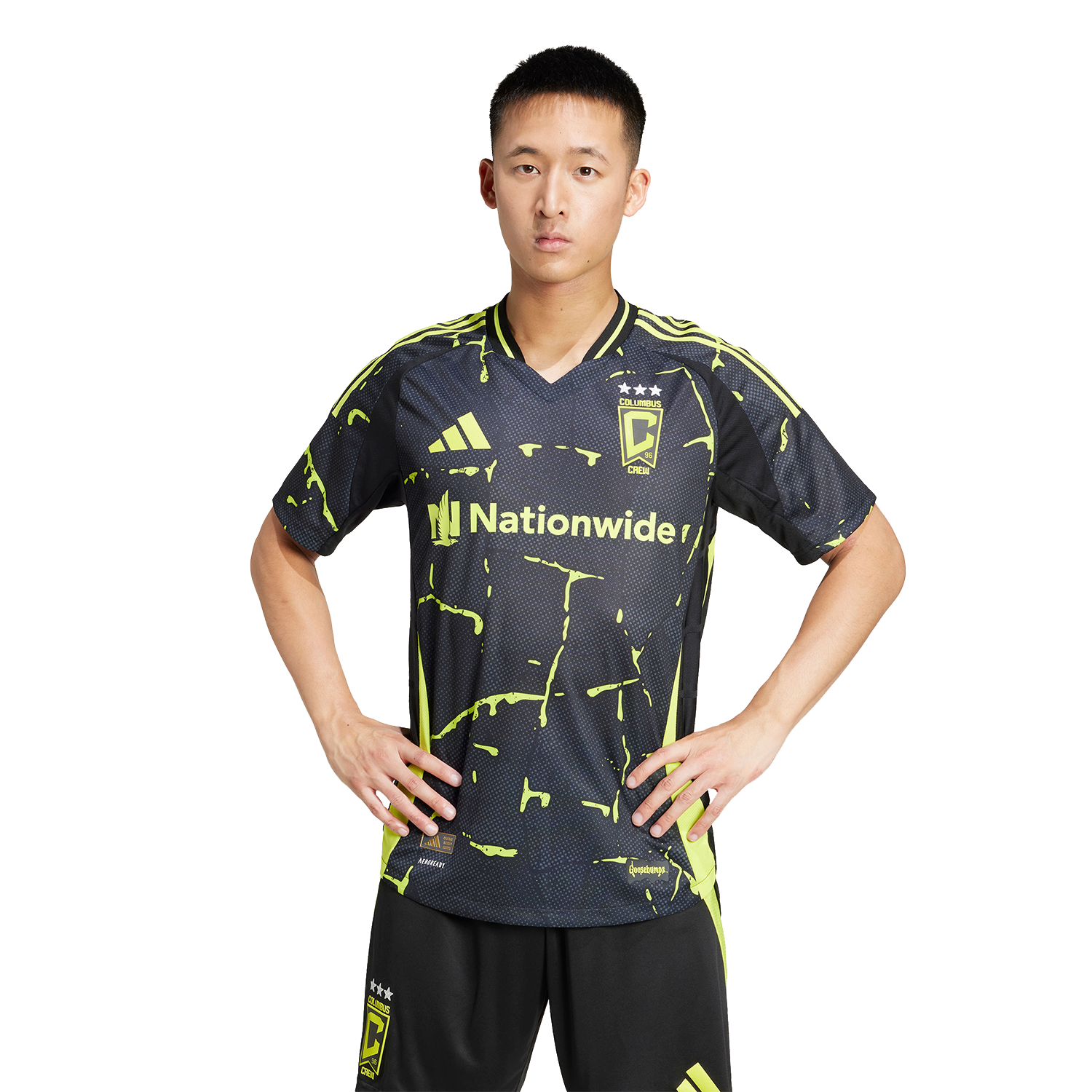 This Columbus Crew away authentic jersey from adidas stands out with ultraviolet-reactive yellow "slime" dripping down its black base. Inspired by the Goosebumps books, the bold design also incorporates a heat-applied team badge and a pair of eye-catching sign-offs. Lightweight fabric and moisture-managing AEROREADY combine to produce frighteningly good football.