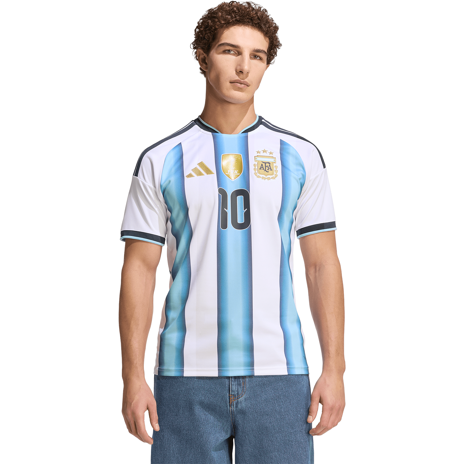 The Argentina 26 Home Messi Jersey is more than just a jersey. It's a tribute to Argentina's football legacy. This jersey marks the first World Cup where the team proudly wears the 3rd star, symbolising their triumphs in '78, '86, and '22. Integrated Climacool fabric technology wicks and disperses your sweat for a cool, dry and distraction-free performance, so you can feel fresh, focused and ready, even during intense matches. With a slim fit, this jersey offers a sleek and athletic look, allowing you to move freely and confidently. The interlock fabric offers durability and comfort, making it a great choice for a range of activities. Embrace the spirit of the World Champions with this jersey. Whether you're on the pitch or cheering from the stands, this jersey connects you to the heart of Argentina's football DNA.