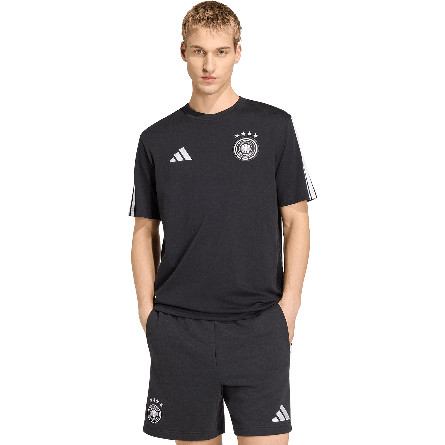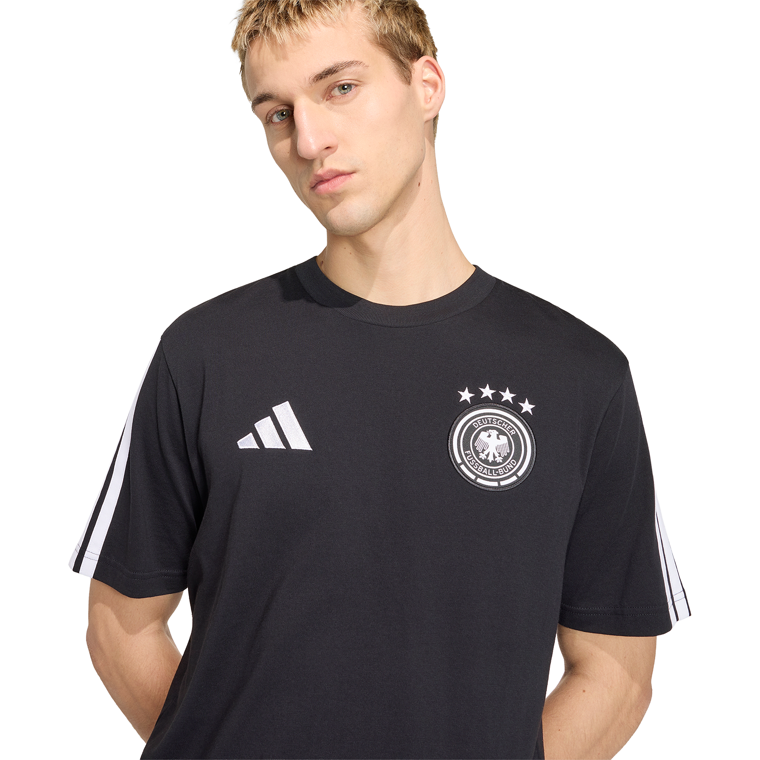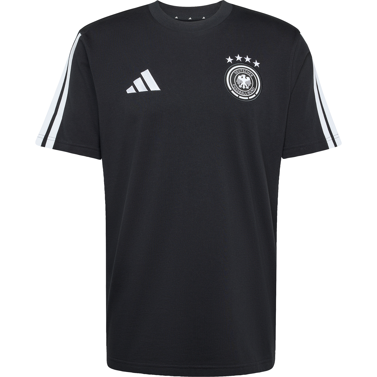 The Germany DNA t-shirt delivers a fresh, confident take on football fashion. With its clean silhouette and signature adidas edge, a versatile piece rooted in sport culture. The soft cotton jersey brings comfort, while the regular fit and crew neck elevate the profile, giving the piece a contemporary, understated elegance. Finished with the German national crest, with four World Cup winner stars on top, plus the adidas Performance logo on the other side for a look that's vital and full of intent.