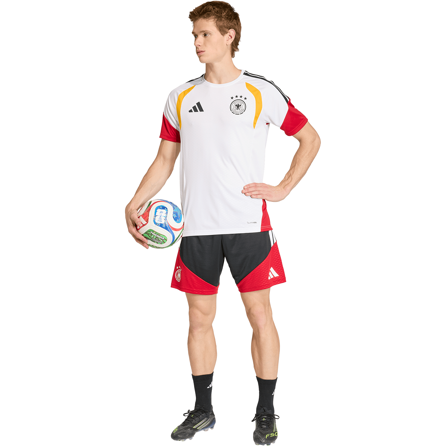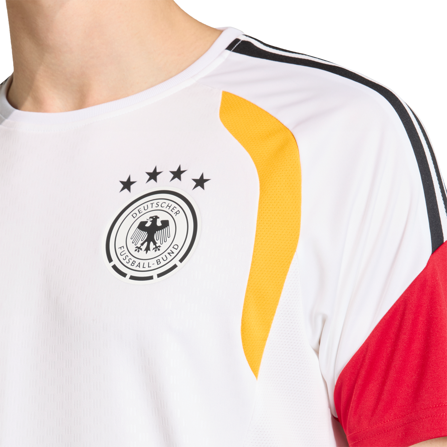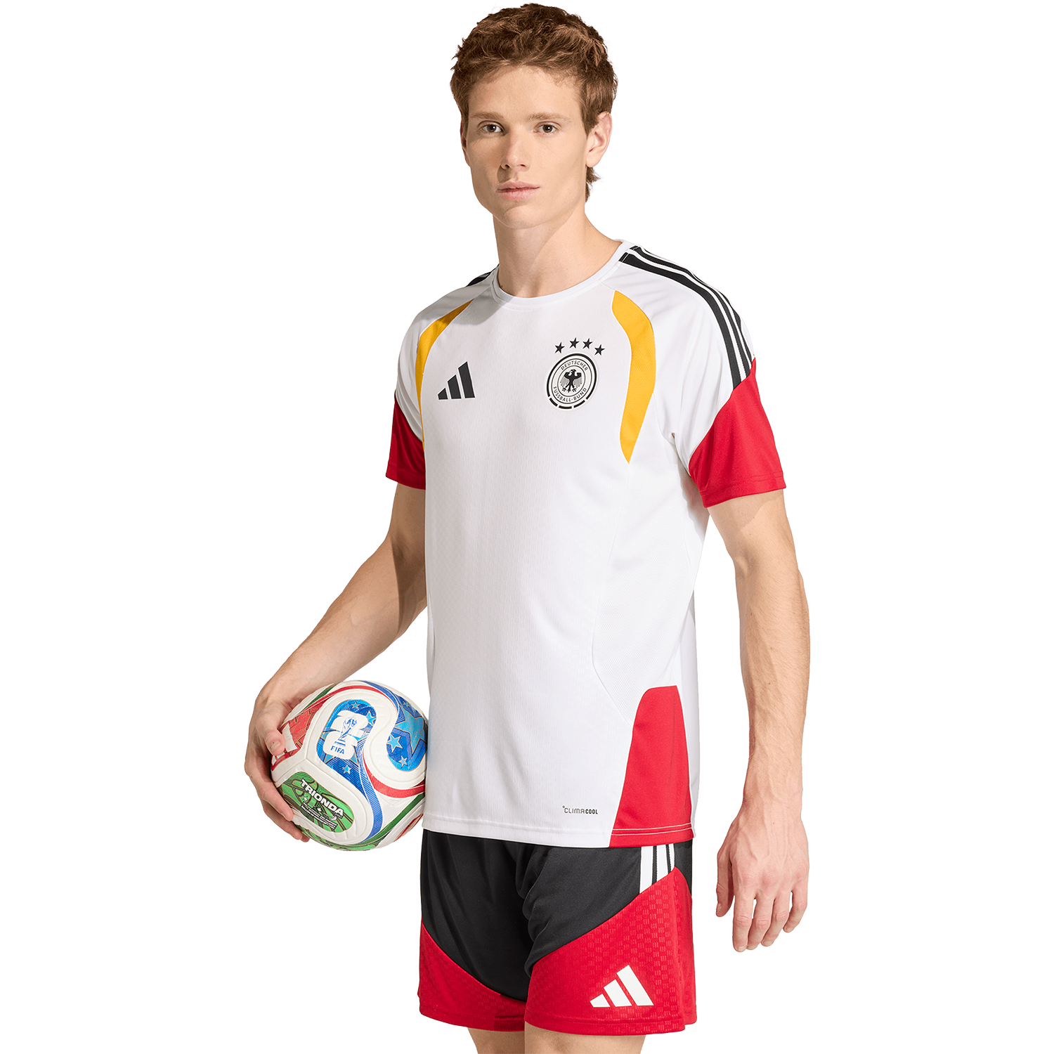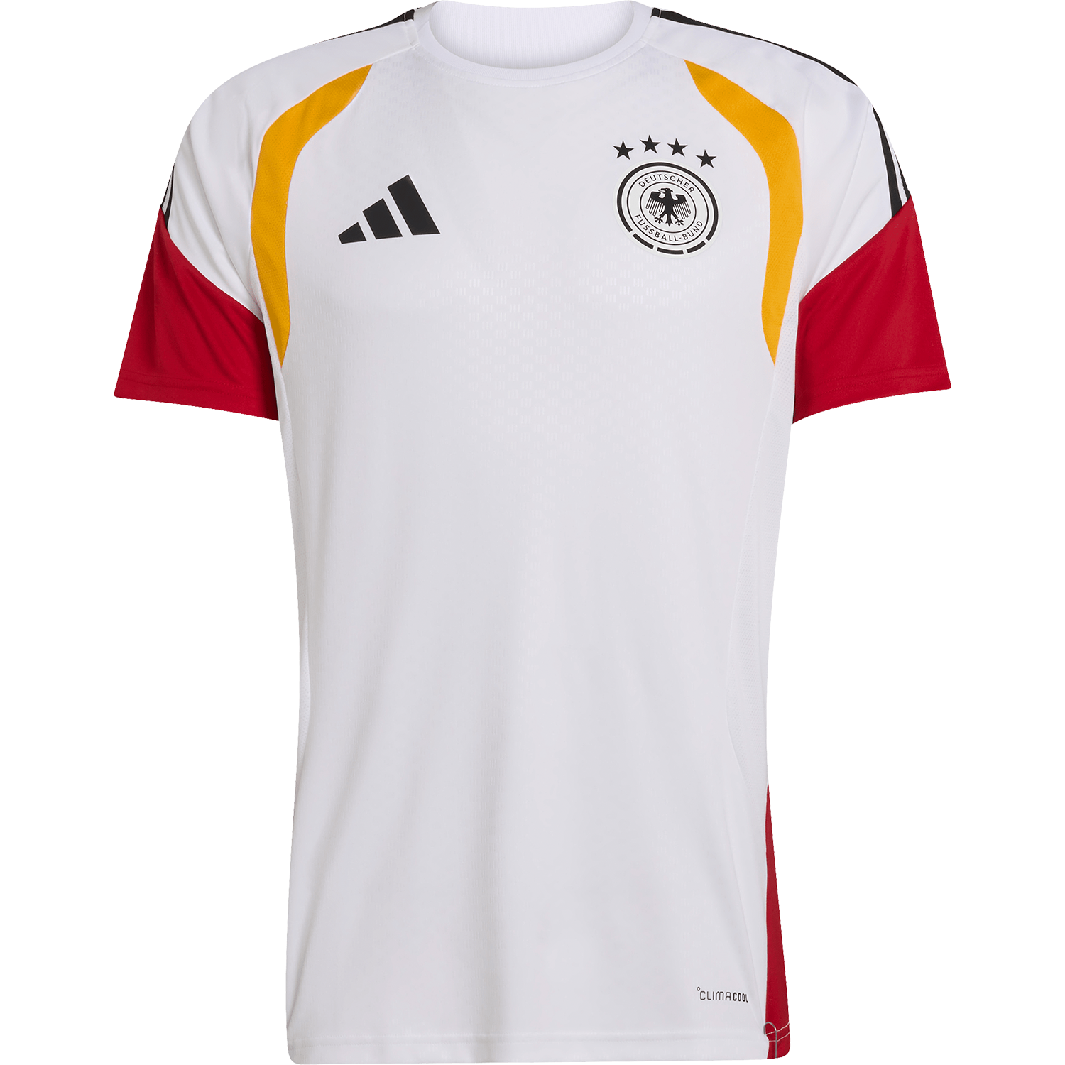 For all the hard work behind the scenes and the cold, muddy mornings, the Germany 26 Tiro training jersey is built to give you an edge and help turn match days into victories. With a sleek, modern design, it reflects adidas football DNA for a confident look on and off the pitch. And with its slim fit, it delivers a streamlined silhouette that moves with you. Incorporating adidas Climacool technology for faster sweat release and absorbency to aid cooling and help you cool down when the intensity picks up. From intense training sessions to casual kickabouts, this training jersey delivers a thoughtful blend of performance and style to match your game.