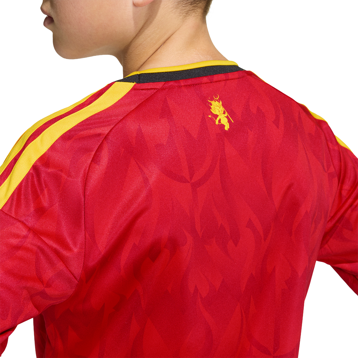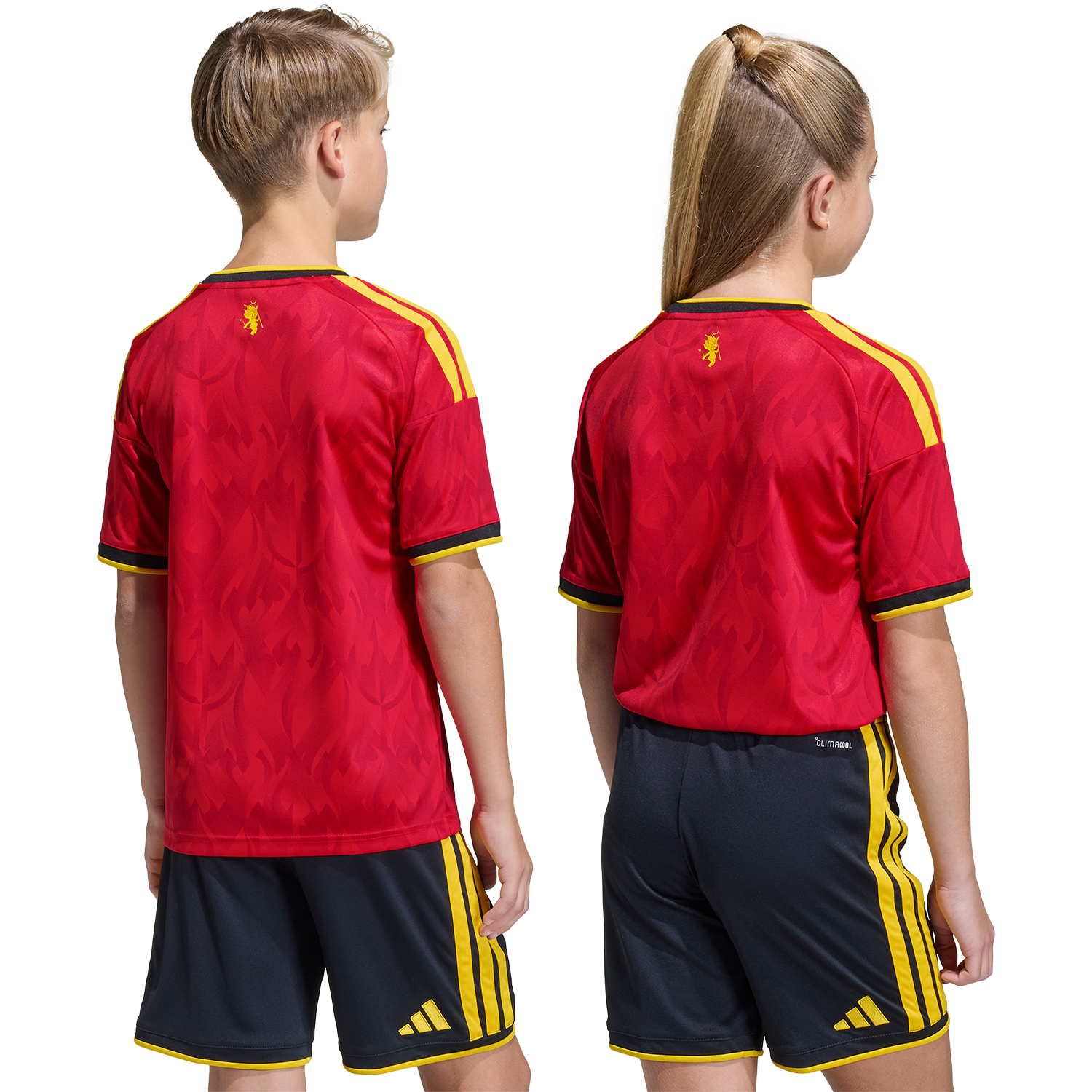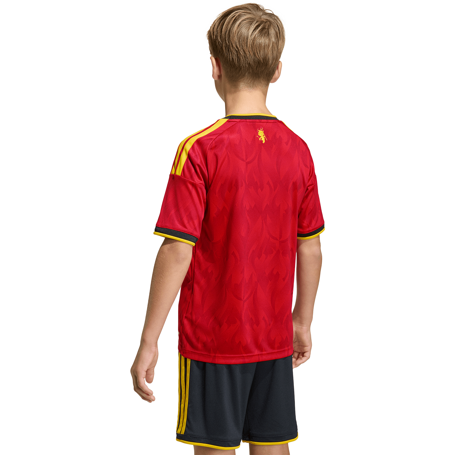 Alimenta su pasión por el fútbol con la camiseta local de Bélgica 26. Inspirada en el espíritu fogoso de los Diablos Rojos y decorada con atrevidos motivos de diablos y llamas, captura el espíritu de la selección belga. Diseñada para niños activos, incorpora la tecnología adidas Climacool para que se sientan frescos durante todo el partido gracias a sus fibras de secado rápido que ofrecen una sensación de frescura en la piel. Su estilizada silueta de fútbol se completa con el logotipo de adidas y el escudo de la Real Federación Belga de Fútbol para un look lleno de carácter y orgullo nacional.