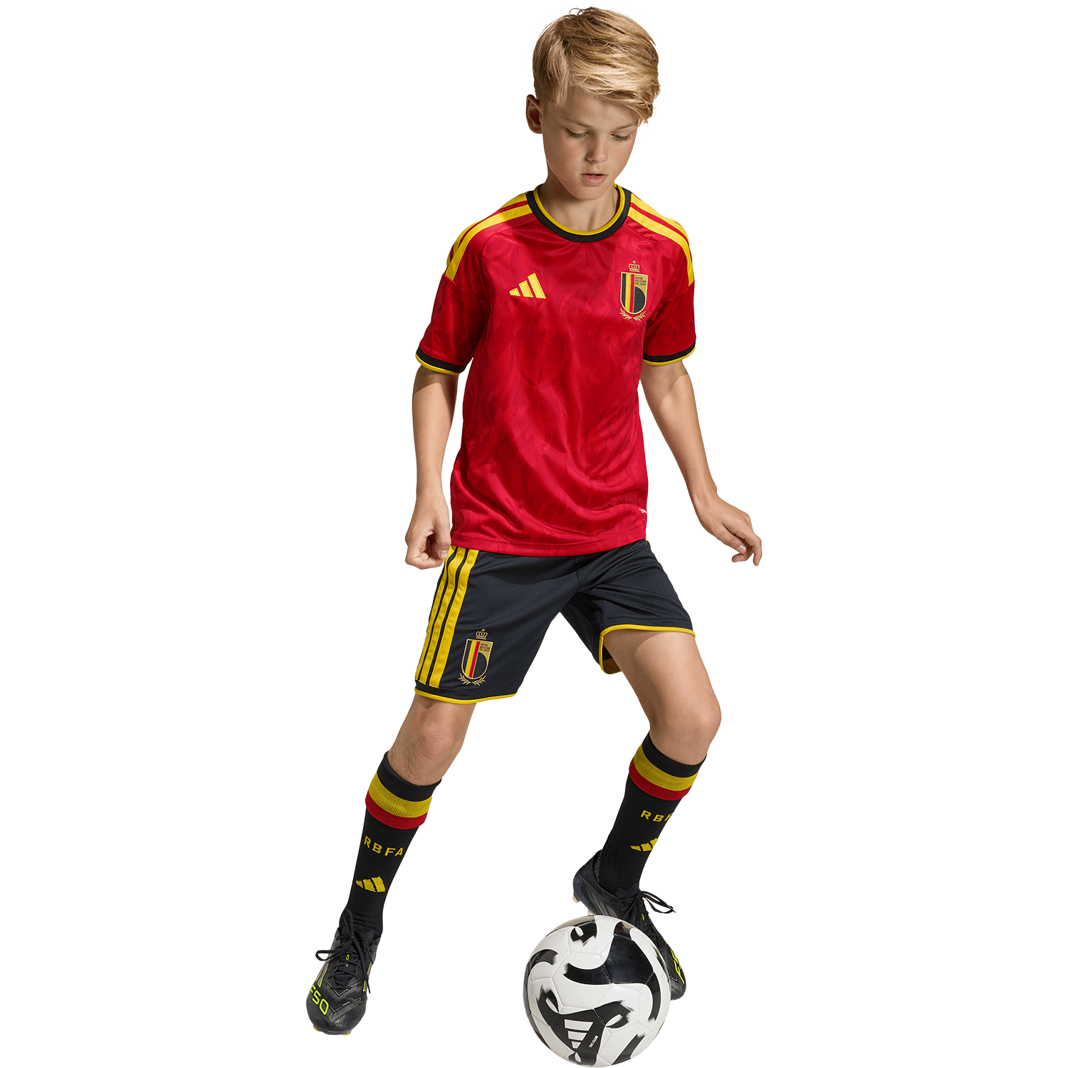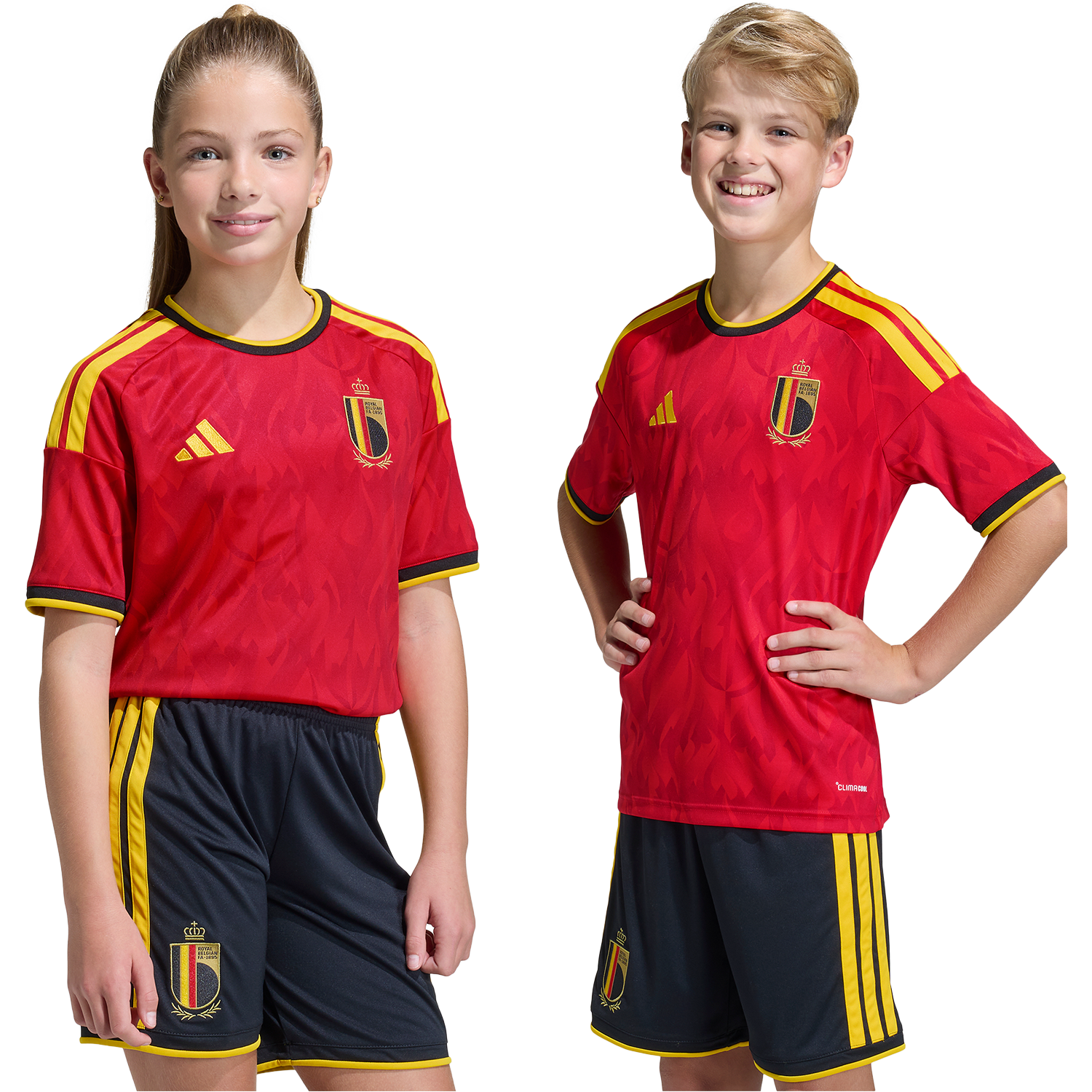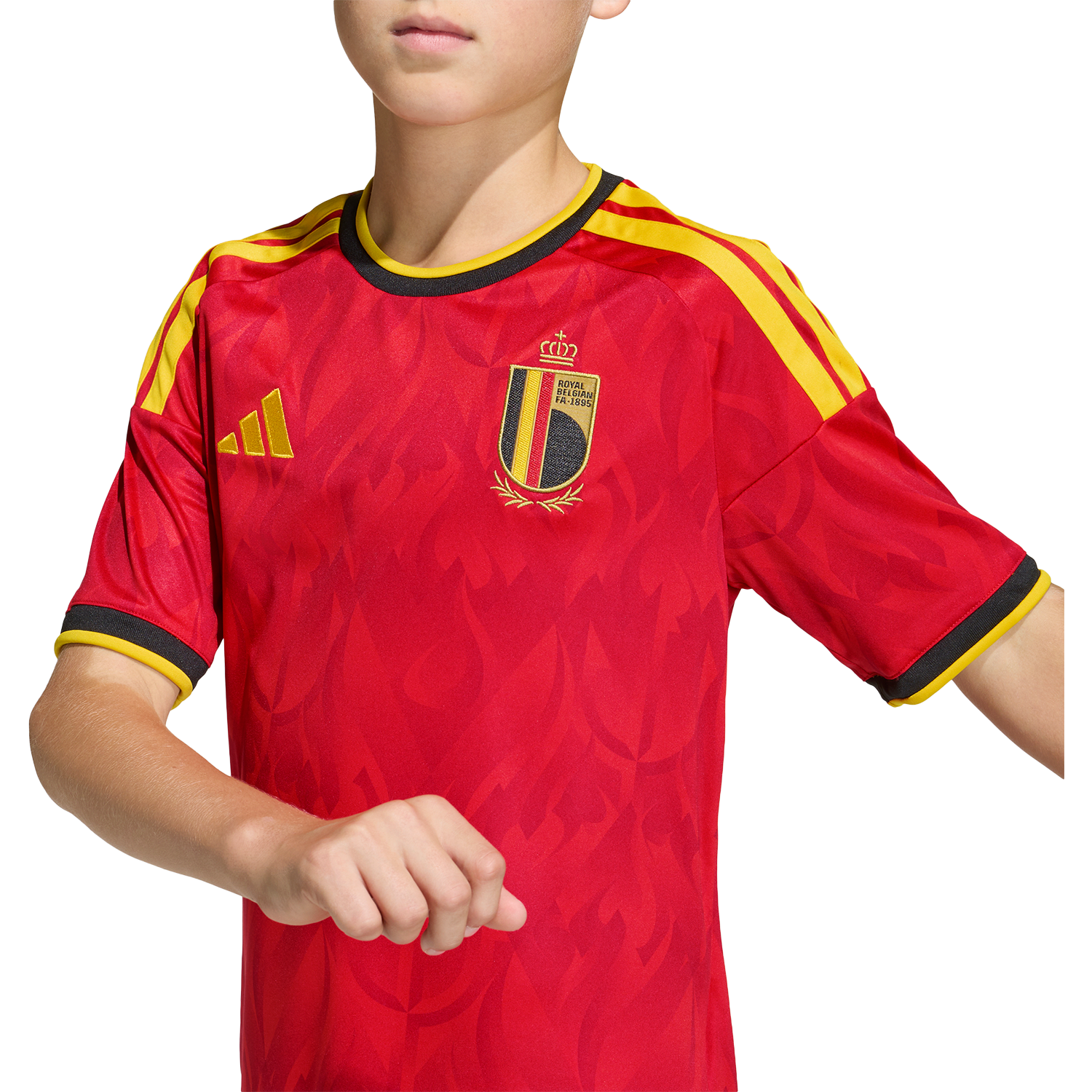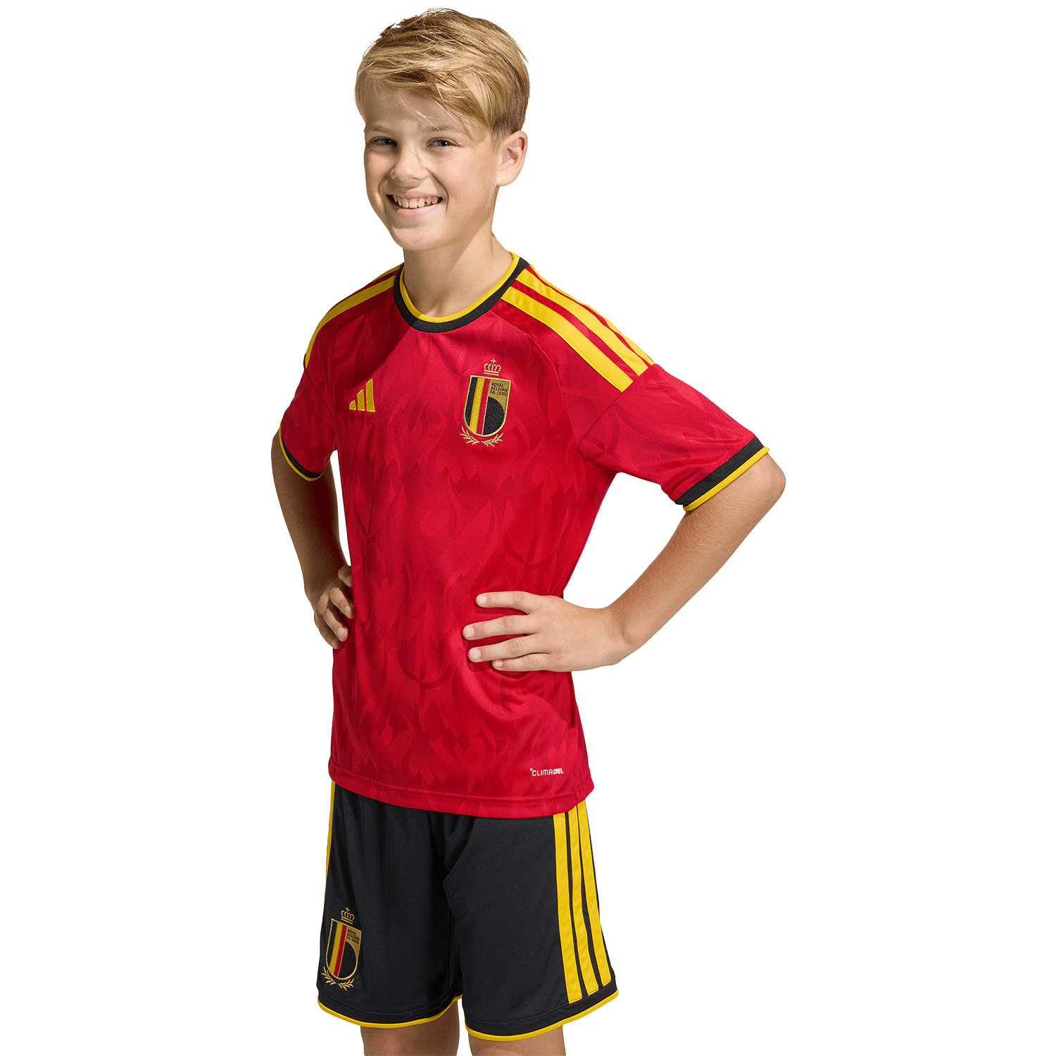 Alimenta su pasión por el fútbol con la camiseta local de Bélgica 26. Inspirada en el espíritu fogoso de los Diablos Rojos y decorada con atrevidos motivos de diablos y llamas, captura el espíritu de la selección belga. Diseñada para niños activos, incorpora la tecnología adidas Climacool para que se sientan frescos durante todo el partido gracias a sus fibras de secado rápido que ofrecen una sensación de frescura en la piel. Su estilizada silueta de fútbol se completa con el logotipo de adidas y el escudo de la Real Federación Belga de Fútbol para un look lleno de carácter y orgullo nacional.