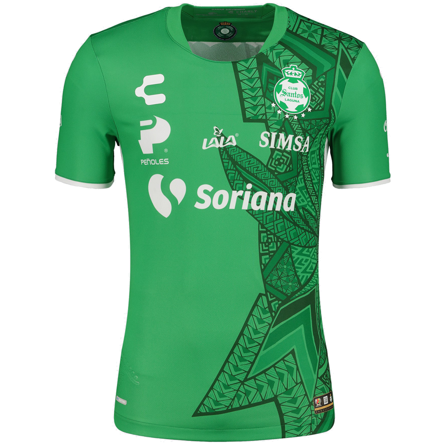 Charly se ha asociado con dos escultores, Jacobo y María Ángeles, para crear camisetas de tercera edición de la Liga MX de edición especial que representan la inmensidad y la belleza de México. Colores, formas y detalles vibrantes la pasión y el espíritu guerrero de los Albiverdes. Una insignia oficial del club en el pecho, combinada con material que absorbe la humedad e inserciones de malla para ventilación, hace que esta réplica de la camiseta sea perfecta para el fanático que quiere mostrar su orgullo por Santos Laguna.