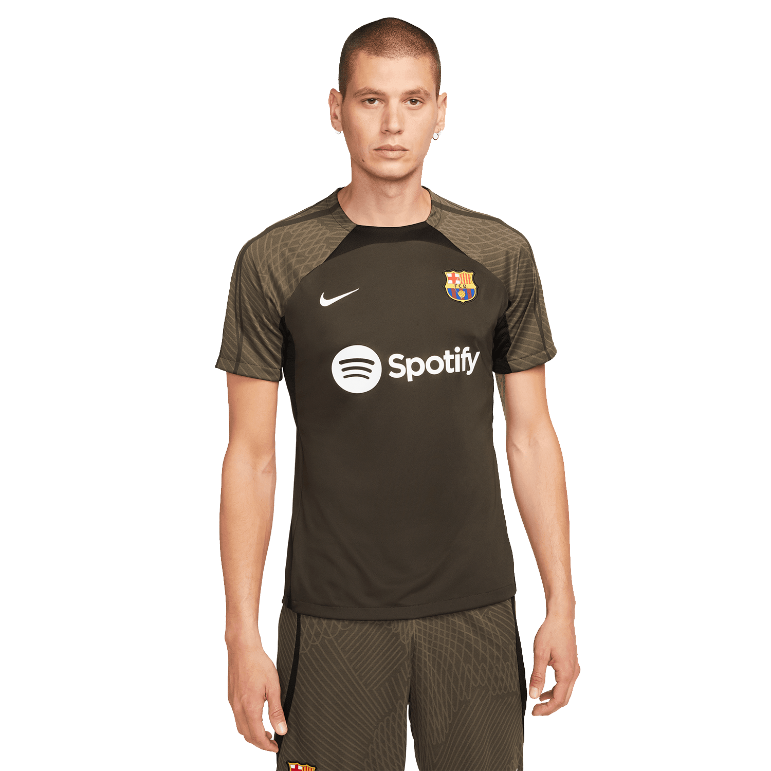 Prepárate para el partido con la camiseta de manga corta Nike FC Barcelona 2023-24 Strike para hombre. Diseñada con tecnología Dri-FIT para el control de la humedad, esta camiseta proporciona una comodidad superior durante las sesiones de entrenamiento. Con el escudo del Barça y un estilo atrevido, es la opción perfecta para los fanáticos que quieren entrenar como sus jugadores favoritos.