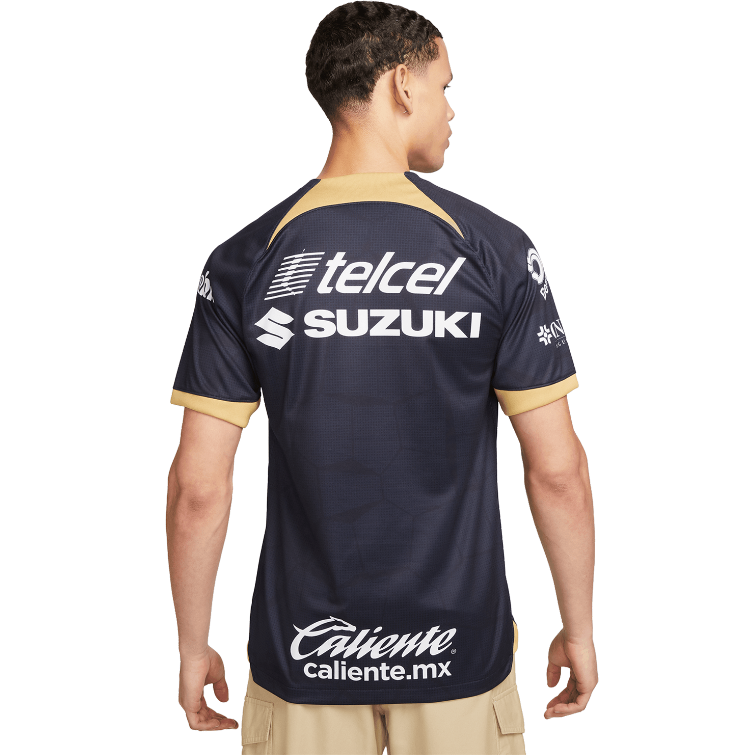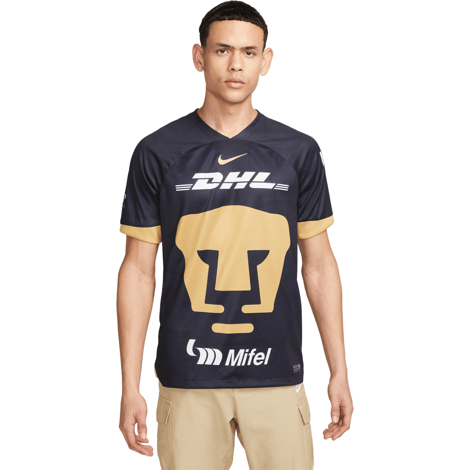 Descubra la camiseta de visitante Stadium Nike Pumas 2023-24 para hombre, que presenta un inteligente homenaje a la icónica cantera. La base de obsidiana oculta un intrincado patrón de piedras apiladas por toda la prenda, que ofrece un guiño sutil a la herencia del club. Las mangas y el logotipo están adornados con lujosos detalles dorados, añadiendo un toque de elegancia. Diseñada con tecnología absorbente de sudor, esta réplica de camiseta combina elementos de diseño con características impulsadas por el rendimiento, lo que garantiza una apariencia lista para el juego que rinde homenaje al espíritu de los Pumas. Da rienda suelta a tu pasión por tu equipo favorito con este kit excepcional.