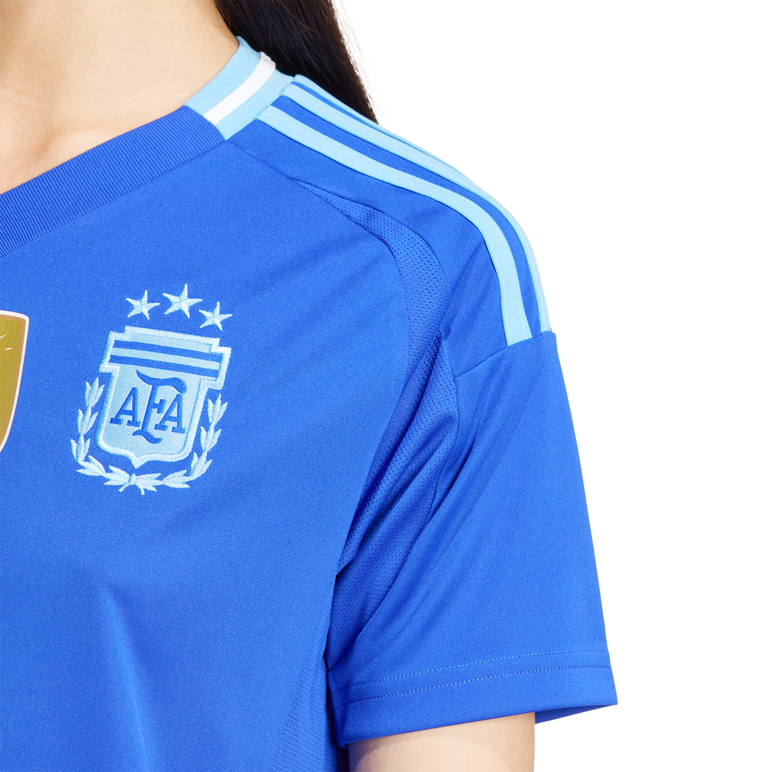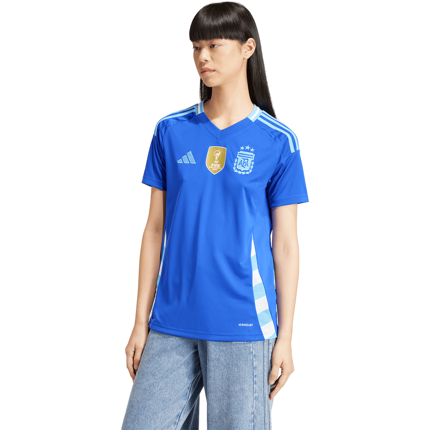Show your support for Argentina on the road with the adidas Argentina 2024 Women's Away Stadium Jersey. Featuring AEROREADY technology for optimal moisture control, this jersey offers a stylish fit and the bold away colors of La Albiceleste, making it perfect for female fans.
