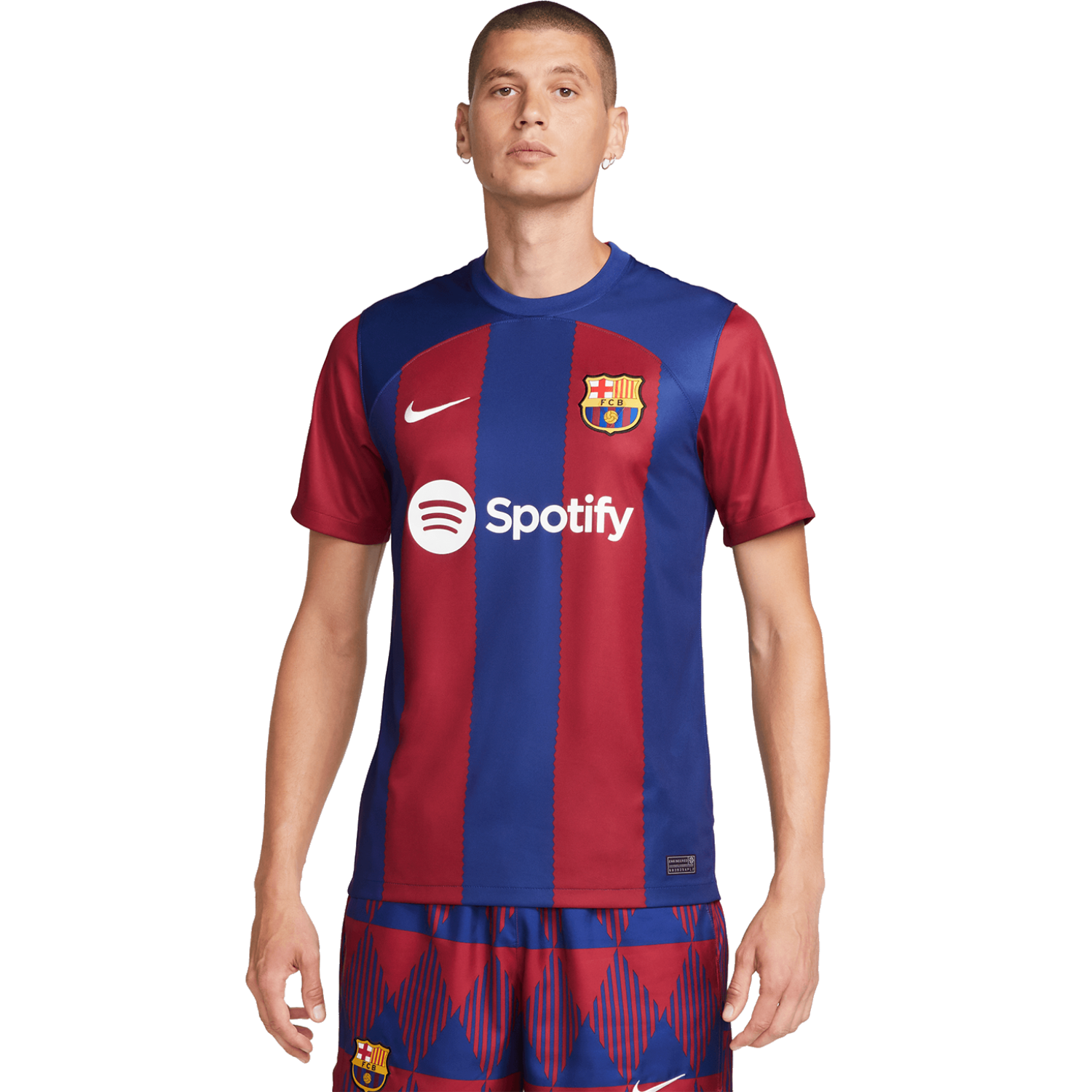 The Nike FC Barcelona 2023-24 Men's Home Stadium Jersey is a tribute to the remarkable 30-year evolution of the Women's squad within the club. This jersey features a concealed diamond-shaped crest, paying homage to the historical significance of the Women's team. Additionally, the iconic stripes now boast a stylish diamond pattern along their edges. This replica jersey flawlessly combines genuine design elements with lightweight and quick-drying technology, ensuring ultimate coolness and comfort for the world's most renowned soccer superstars during intense matches. Get ready to experience the pinnacle of style and performance on the field with FC Barcelona's latest home kit.